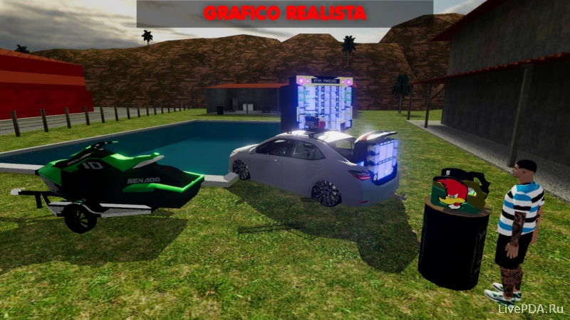 Но в Rebaixados de Favela не всё внимание уделяется автомобилю. Можно также приодеть и главного героя. На выбор есть кепки, футболки, шорты — в общем, всё, что нужно для модного лука.