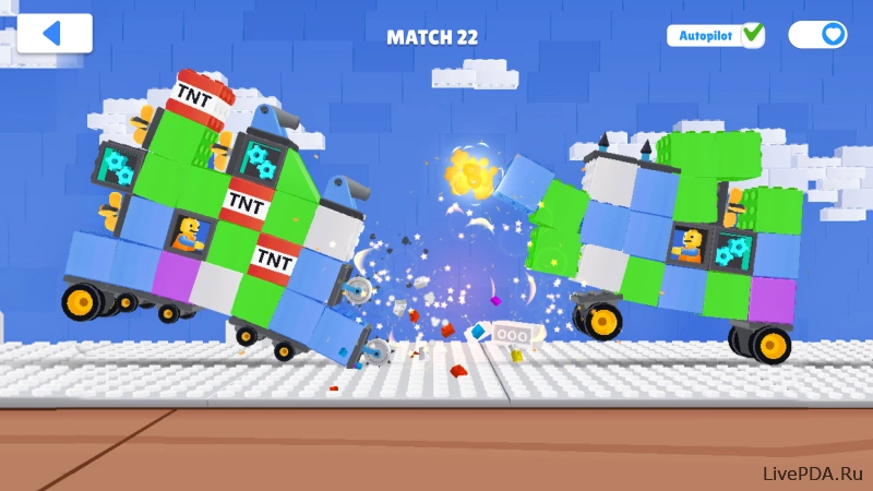 После сборки техника отправляется на арену. Бои проходят в реальном времени и управляются касаниями экрана. Машина двигается влево и вправо, стрельба срабатывает автоматически при сближении с противником. Важную роль играет баланс. Большое количество блоков повышает запас прочности, но снижает манёвренность. Лёгкая конструкция быстрее уходит от атак, но хуже переносит урон. Из-за этого каждый бой напоминает небольшую головоломку, где приходится оценивать дистанцию, момент атаки и положение на арене.