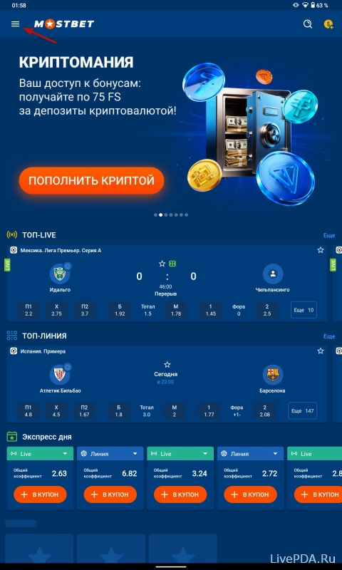 Авторизуйтесь и откройте меню