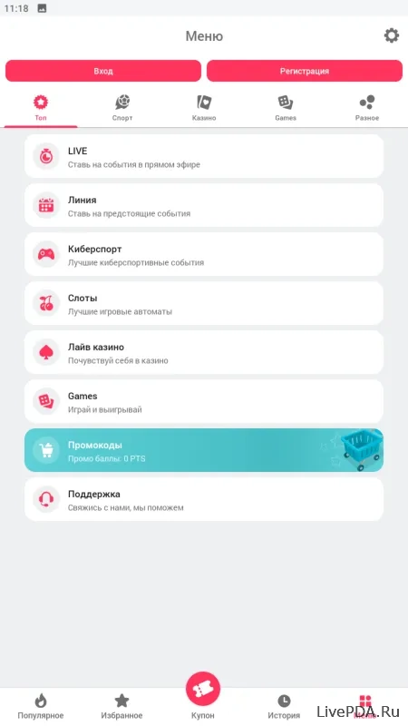 Promo code livepda activates welcome bonus during registration.