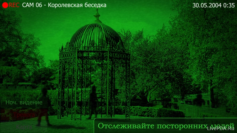 The royal garden has been regularly attacked by vandals at night, so you've been hired as a security guard. Shifts are quite short—you start your shift at midnight, ending at 6 AM. You sit in a hut on chicken legs and watch a monitor that displays footage from cameras placed throughout the garden. You also need to wind up the music box so the royal children can fall asleep.