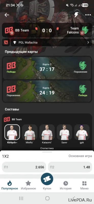 Made conveniently, without overload. Dark theme, important sections are placed at the top, the coupon is filled out in a couple of taps. In Live there is a text broadcast, for some matches there is also video right in the application. Support responds in chat around the clock, and without templated replies.
